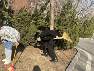 下午三点半,学生党员在公寓3、4号楼中间连廊集合,根据具体安排展开本周义务劳动。学生党员用扫帚、簸箕等工具,钻进树林,将各种果皮、纸屑等废弃物捡进垃圾袋,细心地清扫学生公寓周边空地、草坪,以小组为单位承担每一片卫生区域的清洁工作,做到不留安全卫生死角,听从指挥、分工明确、相互合作。