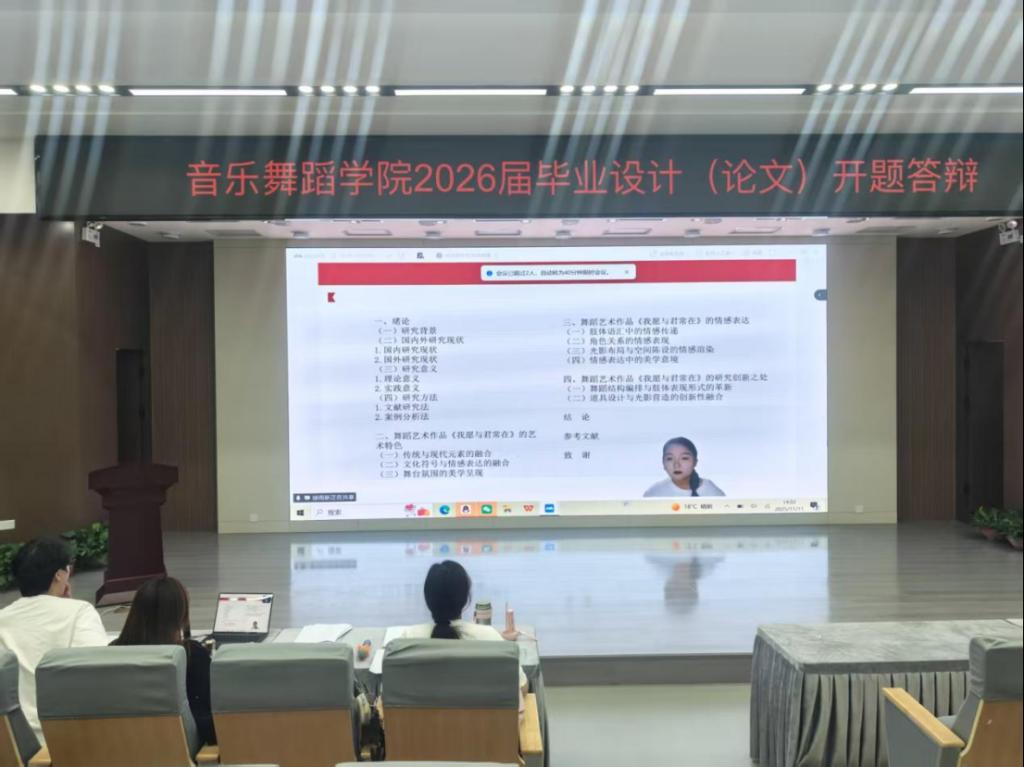 为切实保障毕业设计(论文)质量,严把人才培养出口关,帮助2026届毕业生明确论文研究方向、梳理写作思路,11月11日,音乐舞蹈学院2026届毕业设计(论文)开题答辩在知行楼顺利举行。学院各专业骨干教师组成答辩评审组,对本届毕业生的论文开题方案进行全面评审与指导。