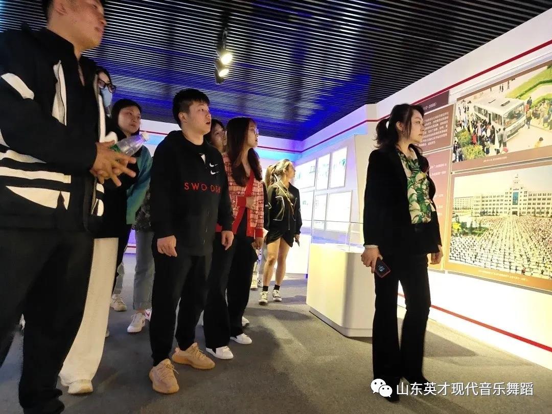 为热烈庆祝中国共产党建党100周年,推动我院党史学习教育,加强学生立足本体,不忘初心的思想引领,2021年4月20日下午,现代音乐舞蹈学院直属党支部书记巩丽同志带领全院党员及15名积极分子、2名发展对象参观了山东英才学院校史馆。