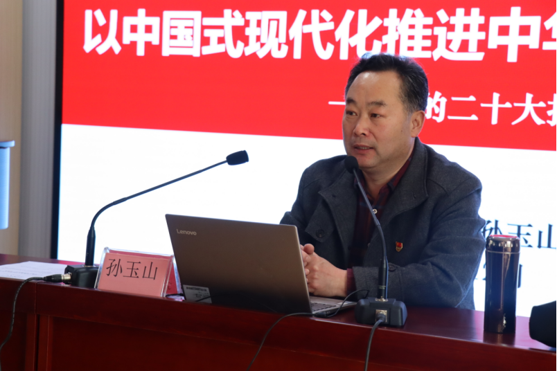 孙书记在“以中国式现代化推进中华民族伟大复兴”为主题的报告中从党的二十大的主题、主要成果、过去5年的工作和新时代10年的伟大变革、马克思主义中国化时代化、中国式现代化、坚持党的全面领导和全面从严治党等8个方面做了全面系统、重点突出的宣讲解读。