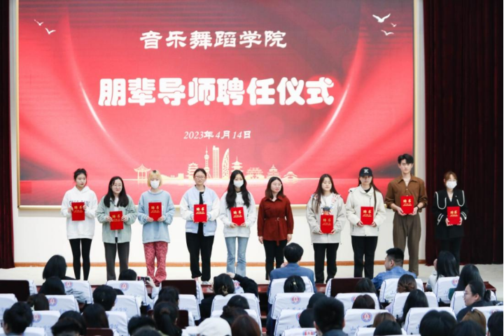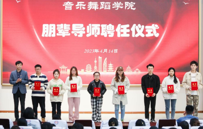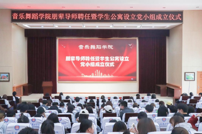 为进一步提升人才培养质量,坚持为党育人、为国育才的核心宗旨,音乐舞蹈学院立足工作实际以学生为中心,以需求为导向,于2023年4月14日在学术报告厅召开“朋辈导师聘任暨党小组成立大会”,推进学院“育人育才”工作新格局,通过配备朋辈导师队伍、组建党小组,形成以思政教育为基础,朋辈导师为桥梁,充分发挥朋辈引导和党员榜样示范作用,更好的助力学院学风建设,促进学院的整体发展。
