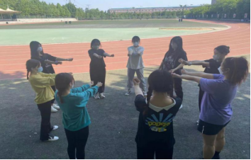 活动开始,同学们分成两个大组,纵队排列成两条大“蜈蚣”。游戏刚开始时,大家总是断断续续的,没有思路,甚至有的同学还想要放弃。但在老师的细心讲解、不断鼓励下,大家很快就熟悉游戏的节奏和思路。