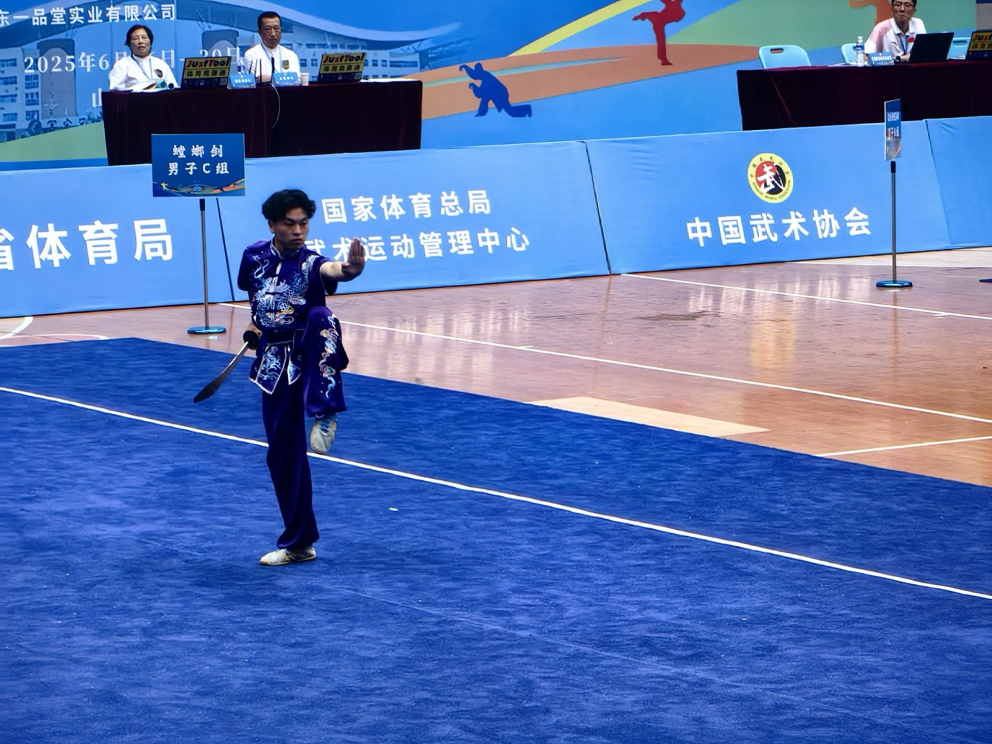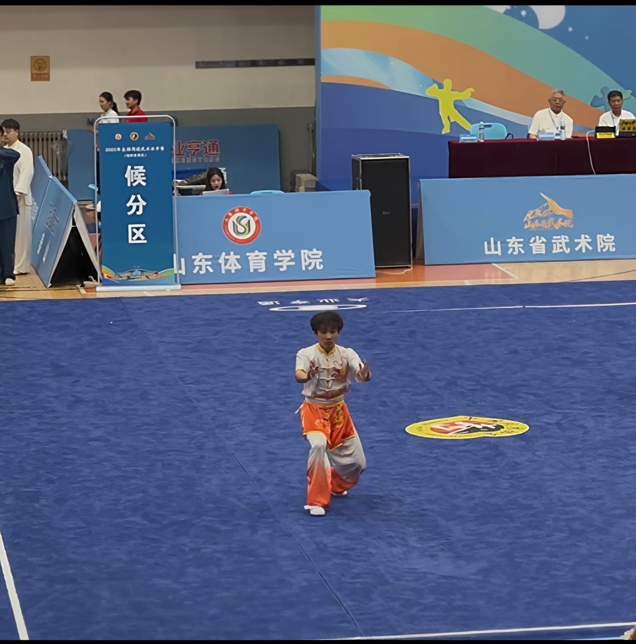 2025年6月26日至30日,2025年全国传统武术公开赛在山东体育学院隆重举行。本次赛事吸引了来自全国各地65支运动队的650余名武术爱好者参赛,我校健儿在宋琦、朱广涛两位教练的精准指导下,凭借扎实的训练功底,在众多选手中脱颖而出,成功斩获全国传统武术比赛C组其他传统器械二等奖一名;梅花路螳螂拳三等奖两名;六合螳螂拳三等奖一名。我校武术队队员在赛场上一展身手,完美展现了英才学院学子的卓越风采。