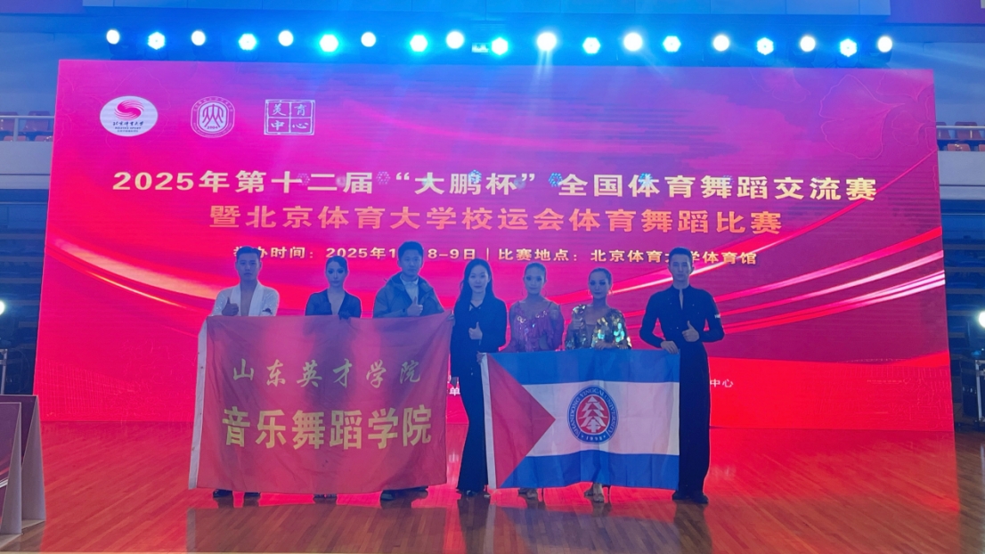 一直以来,山东英才学院高度重视国标舞艺术教育,深耕国标舞专业人才培养,通过搭建校内实训平台、组织参与各级赛事、加强校际交流合作等方式,助力学子全面发展。此次赴京参与“大鹏杯”全国体育舞蹈交流活动,不仅为学子提供了展示自我、切磋提升的高水平舞台,更搭建了学校与全国顶尖体育院校的沟通桥梁,为后续深化教学改革、推进专业建设奠定了良好基础。