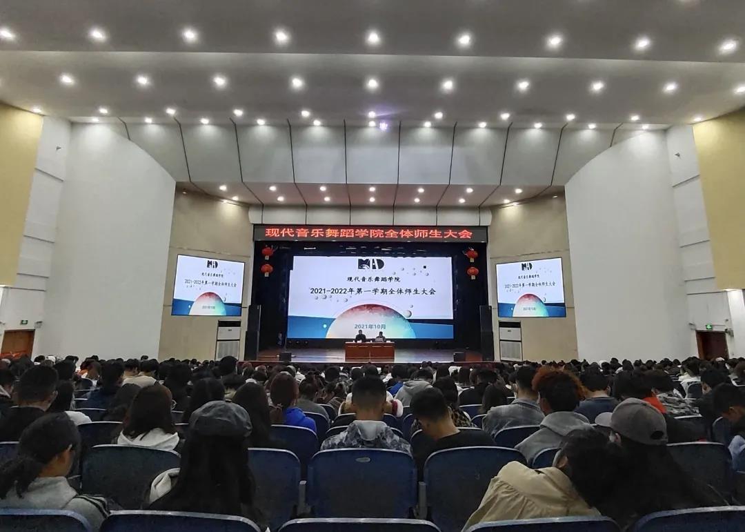2021年10月26日,现代音乐舞蹈学院现代音乐舞蹈学院于南校区大学生活动中心召开“2021-2022第一学期全体师生大会”。出席此次会议的领导有现代音乐舞蹈学院院长吴可畏,党支部副书记王珑。参加此次大会的还有现代音乐舞蹈学院全体辅导员及在校生。