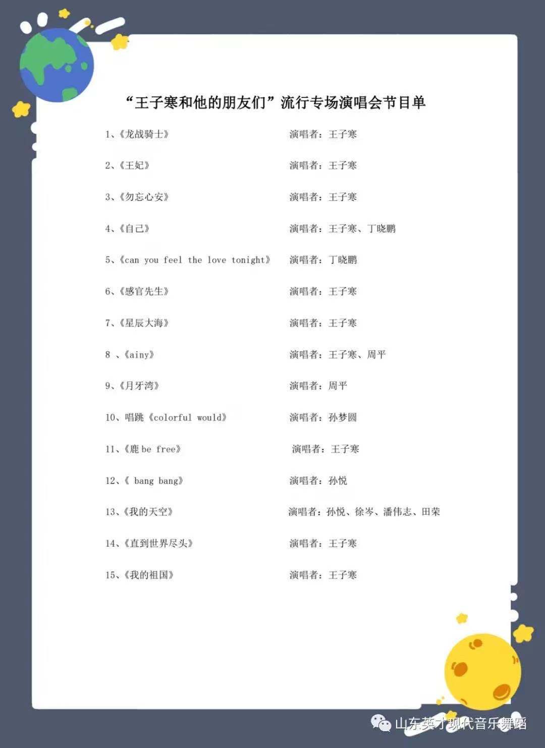 现代音乐舞蹈学院青年教师“王子寒和他的朋友们”流行专场演唱会即将来袭。在此毕业离别之际,这不仅仅是一场庆祝党的生日的活动,更是送给全体毕业生们的一份礼物。欢迎大家前来观看这一场充满激情与感动、欢声与笑语的夏季演唱会,2021年6月10日晚18:00,与您相约山东英才学院南校区大学生活动中心,不见不散!