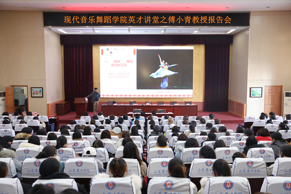 11月25日中午,我院邀请山东省舞蹈家协会驻会副主席、山东青年政治学院舞蹈学院院长、教授、硕士生导师傅小青教授开展英才讲堂,傅教授为我院带来一场题为《“肢体”情感表述的N次方式——舞蹈表演的方法概述》的精彩报告。