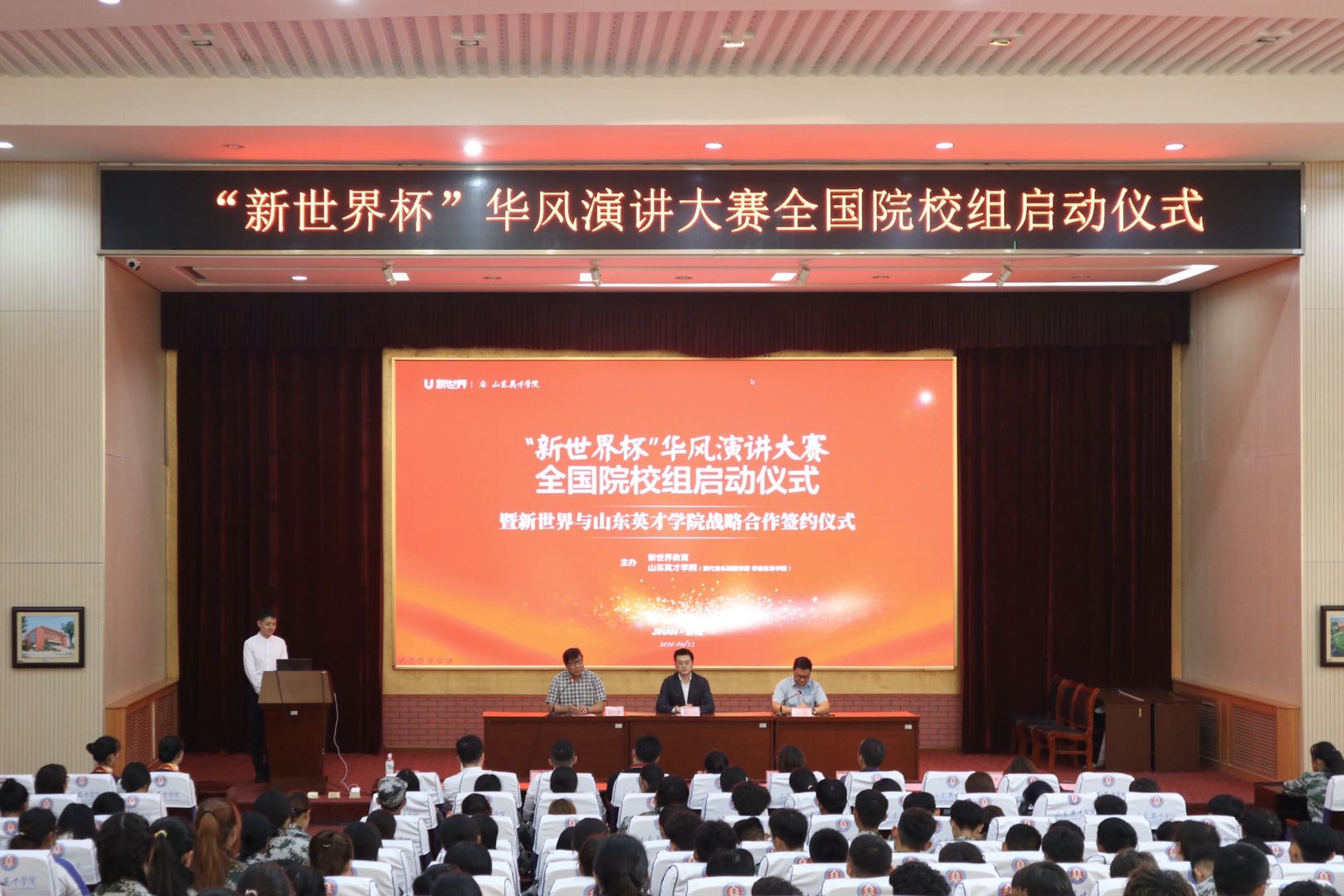 为培养德、智、体、美全面发展的高素质复合型人才,增强学校发展的后劲与活力,实现专业与产业、企业、岗位的对接,2020年9月22日,由新世界教育集团举办的“新世界杯”华风演讲大赛山东院校组启动仪式暨新世界与山东英才学院战略合作签约仪式在山东英才学院报告厅成功举办。