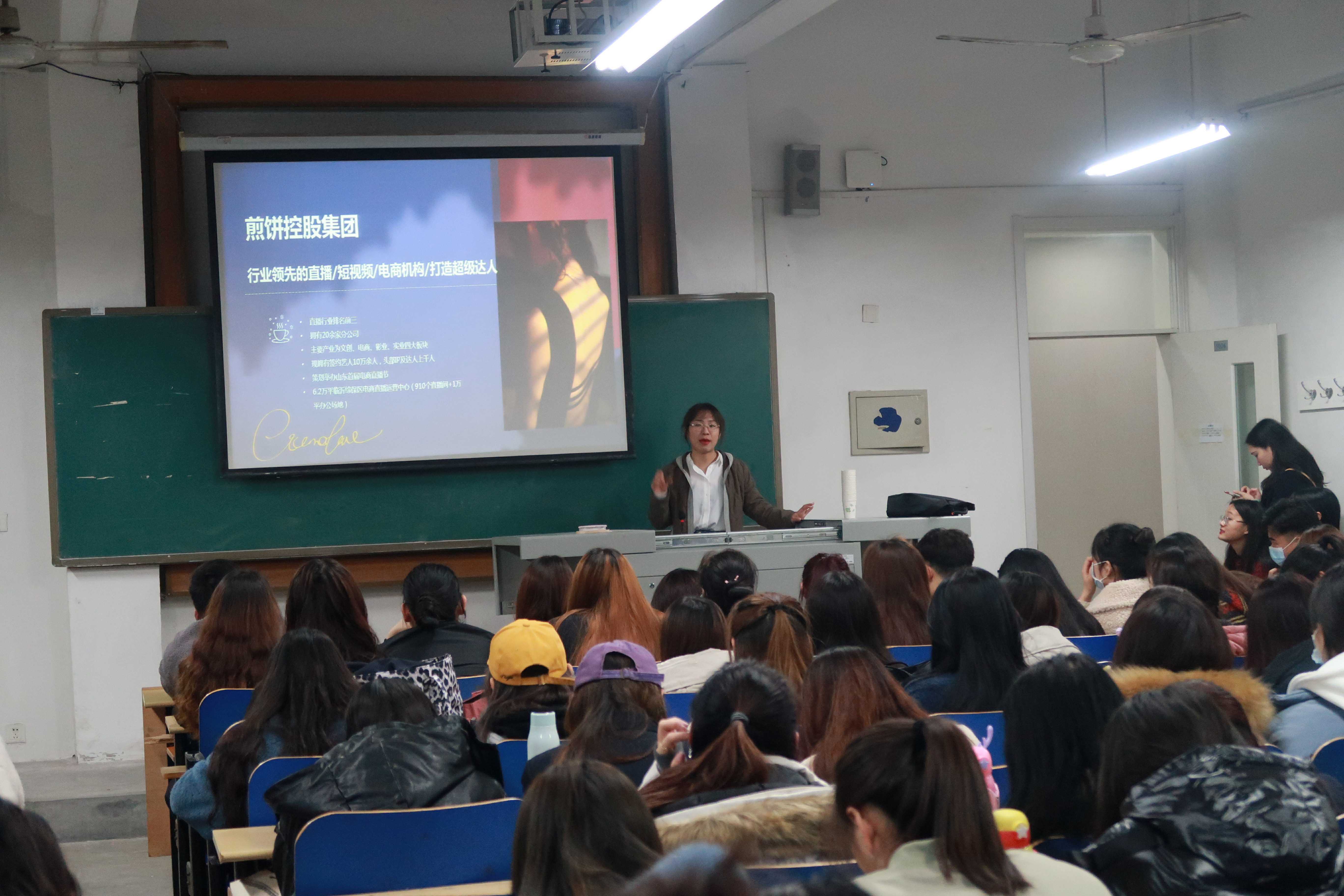 本次讲座主题是“直播那点事儿”,由煎饼控股集团的王延竹与黄霆两位老师进行讲解,主要内容是国家新兴经济体系下,为促进经济全面发展,规范网络商业环境,新增设10项新兴职业。如何正视直播商业模式,规范网络信息审核。中国国家人事人才培训网联合山东煎饼控股集团有限公司,针对在校大学生进行关于新媒体从业人员岗位培训及就业指导,针对当前最火的直播行业进行系统化讲解并解答学生对于直播行业的各类问题。