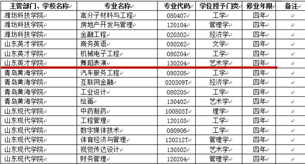 2018年3月15日,教育部发布了教高函〔2018〕4号文件《教育部关于公布2017年度普通高等学校本科专业备案和审批结果的通知》,根据该文件精神,我校今年新增商务英语、机械电子工程、舞蹈表演三个本科专业,其中,舞蹈表演专业隶属于我校现代音乐舞蹈学院,是我院目前唯一的本科专业,实现了我院自有本科专业零的突破。