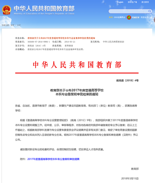 我校获批三个新上本科专业