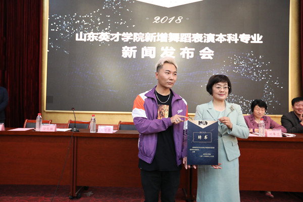 学校特聘冯正为现代音乐舞蹈学院名誉院长,聘请齐格其、郑杨、穆桐、蔡亮、刘国伟、王炎、许桦、刘亚倩等8位业界知名街舞表演艺术家为“明星导师”。杨文董事长为冯正颁发名誉院长聘书,吴可畏院长、徐华楠副院长为8位明星导师颁发聘书。