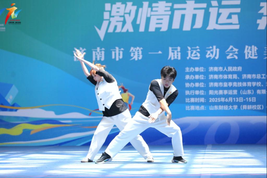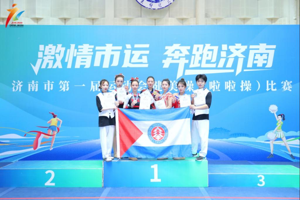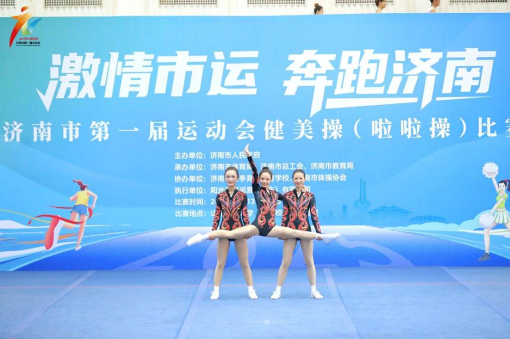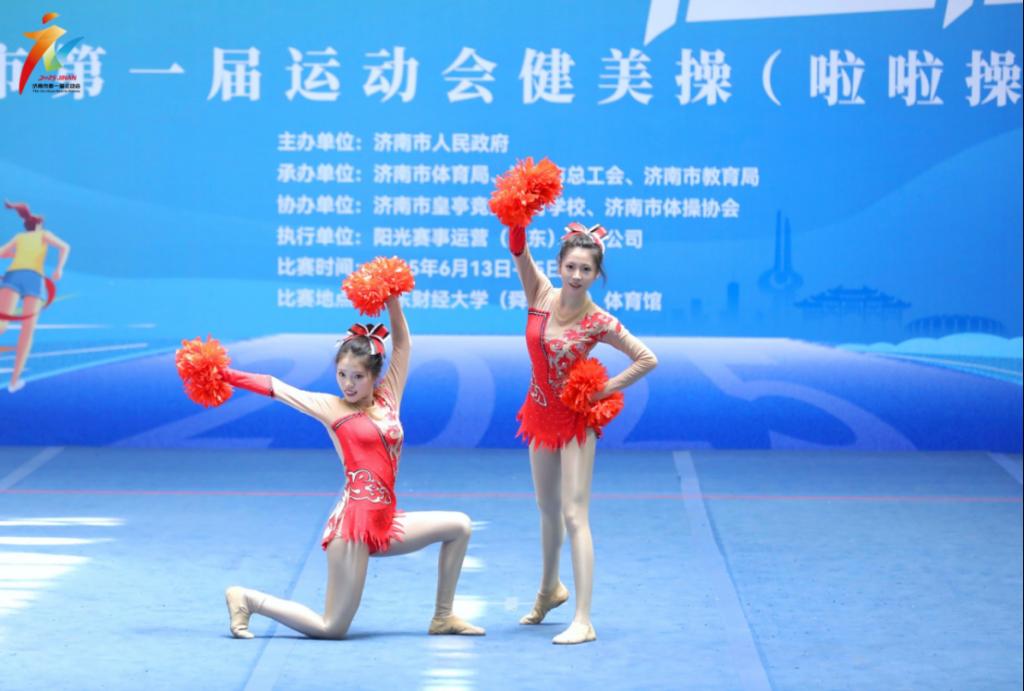 2025年6月13日至15日,济南市第一届运动会健美操啦啦操赛场在山东财经大学(舜耕校区)燃情启幕。本次比赛共有山东体育学院、山东师范大学、济南大学、山东财经大学、山东艺术学院等十九所高校400余名运动员参赛。我校健儿在宋琦、滕杨两位教练的精准指导下,凭借扎实的训练功底、巧妙的动作编排与默契配合,在6个单项的巅峰对决中强势突围,斩获女子单人操第二名、第三名;三人操第二名;双人花球甲组第三名、乙组第三名;双人街舞第二名六项荣誉,并荣获体育道德风尚奖。跃动的身影,为校旗增添璀璨荣光。