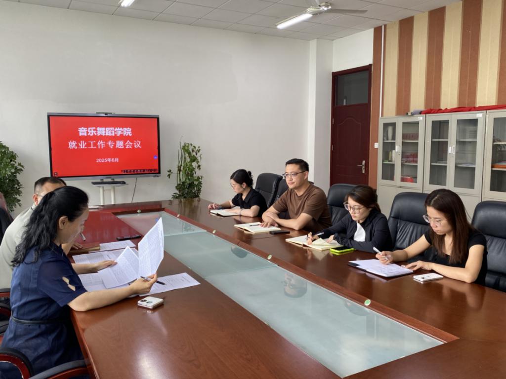 2025 年 6 月 23 日下午,音乐舞蹈学院在知行楼 217 会议室召开了就业专题会议,旨在进一步提升毕业生就业率,拓展就业渠道。学校副校长、音乐舞蹈学院院长李晓玲,音乐舞蹈学院党总支副书记张龙以及全体毕业班辅导员参加了此次会议。
