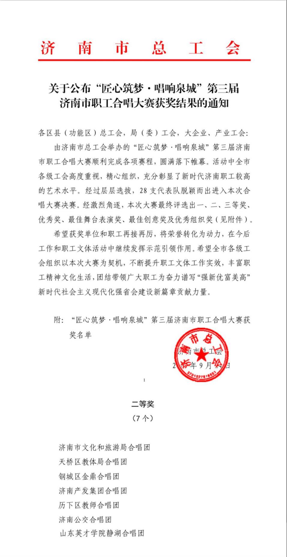 这次获奖,不仅是对静湖合唱团艺术水准的高度认可,更是山东英才学院教师团队“以赛促教、以演赋能”实践精神的生动体现。他们用行动为泉城文化建设注入了一股强劲的教育力量,也为所有热爱音乐、坚持梦想的人们树立了榜样。