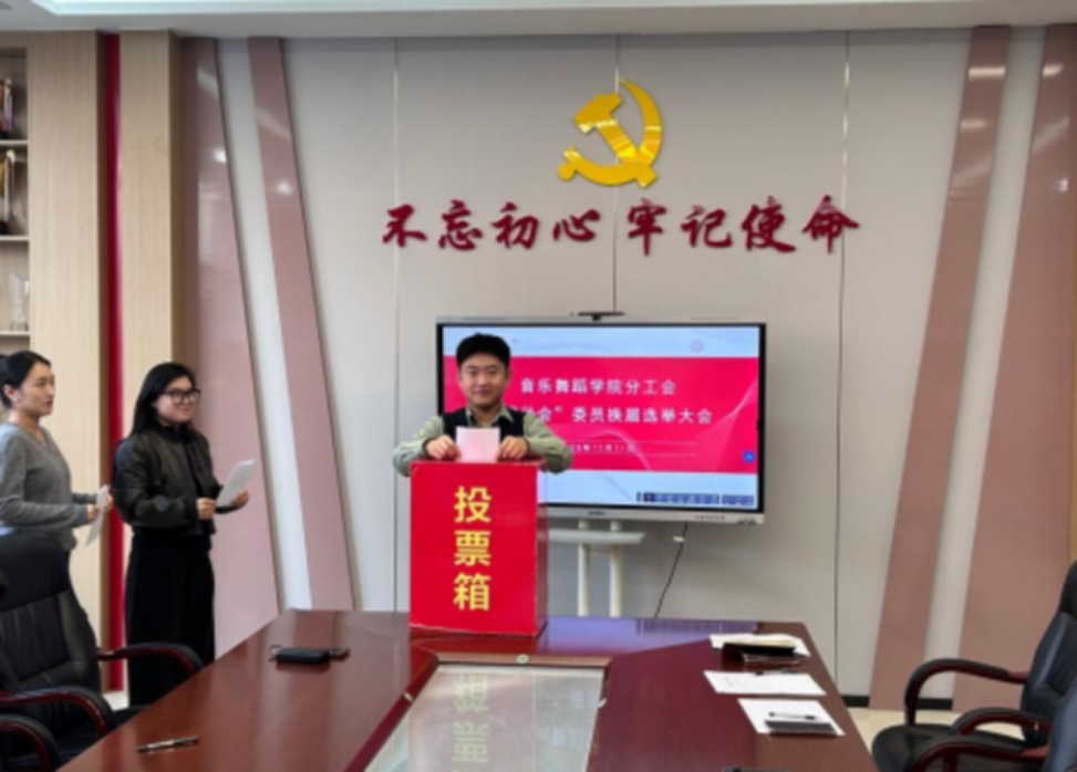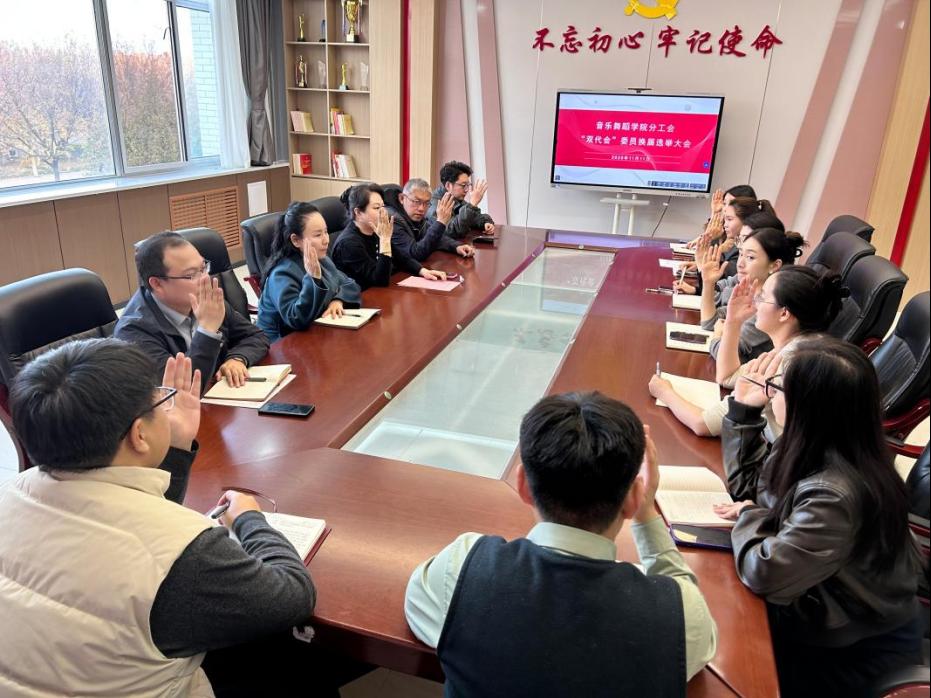 2025年11月11日下午,音乐舞蹈学院分工会委员换届选举大会在知行楼217会议室隆重举行。学院分工会全体代表共13人齐聚一堂,共同履行民主权利,选举产生新一届分工会委员会。