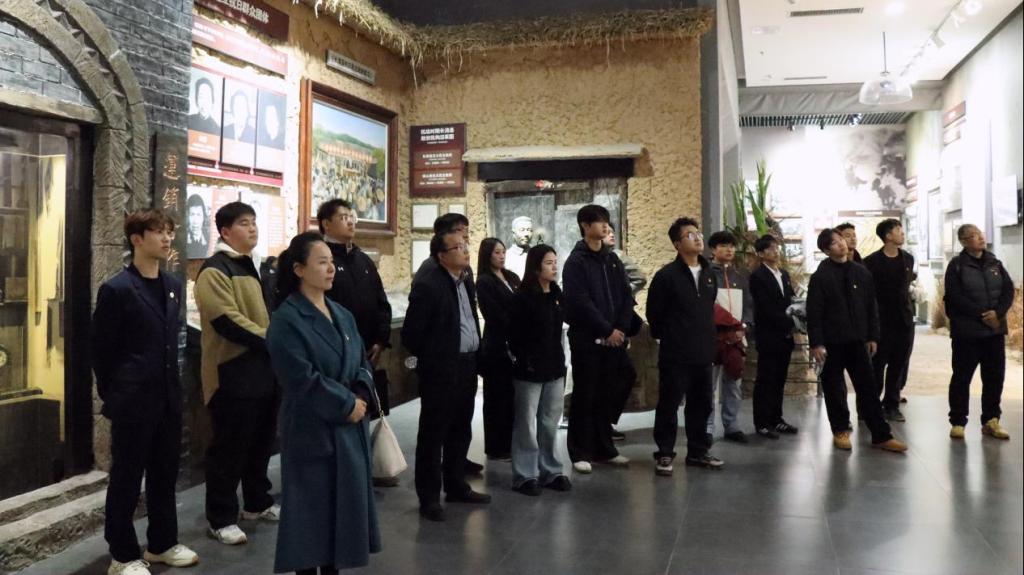 2025 年 11 月 7 日,主题活动正式启动。师生团队走进大峰山革命根据地现场教学中心,开启一场“行走的红色阅读课”:在讲解员的引导下,大家驻足史料陈列馆,看着展柜中泛黄的革命文件、斑驳的武器装备,结合前期研读的历史资料,进一步具象化书中记载的峥嵘岁月;在革命旧址前,党员教师带领学生骨干重温入党誓词,铿锵誓言不仅是对革命信仰的传承,更是对“阅读红色经典、践行初心使命”的生动诠释。