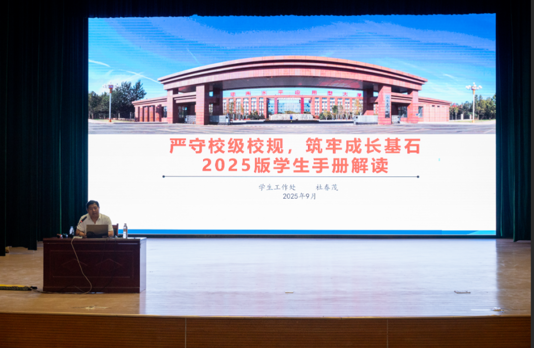 学生工作处杜春茂老师详细介绍了学校的发展历程与文化底蕴,并对学生手册及相关法律法规进行深入解读。通过具体案例,杜老师说明了违纪行为的后果及上报流程,强调同学们应自觉树立规矩意识、严守校纪校规。他鼓励大家尽快调整心态,积极适应大学生活,遵守校园管理规定,以实际行动书写精彩大学篇章。