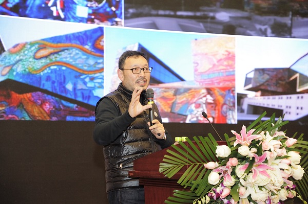 活动首先由四川美院副院长郝大鹏教授为大家做《重回土地》主题报告。郝教授的报告,紧贴大会主题,以四川美院虎溪校区的规划、建筑、景观设计为例,阐述了大学校园的建造该如何担当起大学的使命与责任,实践对生态、文化、理想的坚守与追求,为可持续发展贡献力量。郝教授的报告引起了到场嘉宾的强烈共鸣,也为广大青年设计教师、设计师今后设计事业发展方向起到了指引作用。
