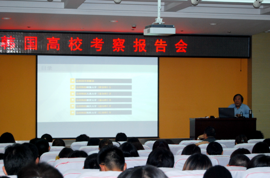 报告会上周长积院长首先向大家讲述了赴韩国民办高校考查的基本行程、考查的主要内容,然后分别对韩国映像大学、大真大学、新罗大学、圆光大学、韩世大学的办学规模、专业设置、授课方式、教学成果等各方面向大家做了详细介绍。尤其对有艺术类专业、教学特点突出的学校,向大家做了着重的讲解。