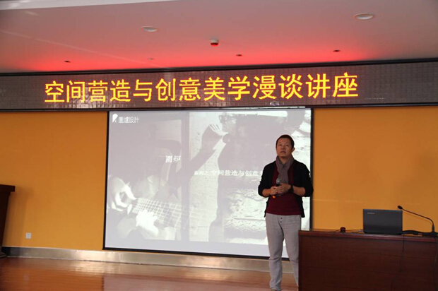2015年10月27日下午,艺术学院邀请围炉设计机构创始人、艺术总监张建先生,在北校区艺术楼报告厅为学生做《空间营造与创意美学漫谈》的讲座。参加会议的有艺术学院周长积院长、朱于芝副院长、全体老师和艺术学院部分专业本科生。