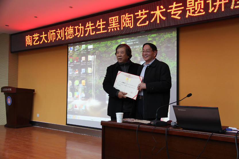 11月10日下午,艺术学院邀请中国黑陶工艺美术大师、艺术学院特聘教授刘德功先生在艺术楼学术报告厅为艺术学院师生做了一场精彩的黑陶艺术专题讲座。艺术学院院长周长积、副院长朱于芝、刘亚东等领导和全体师生参加了讲座。