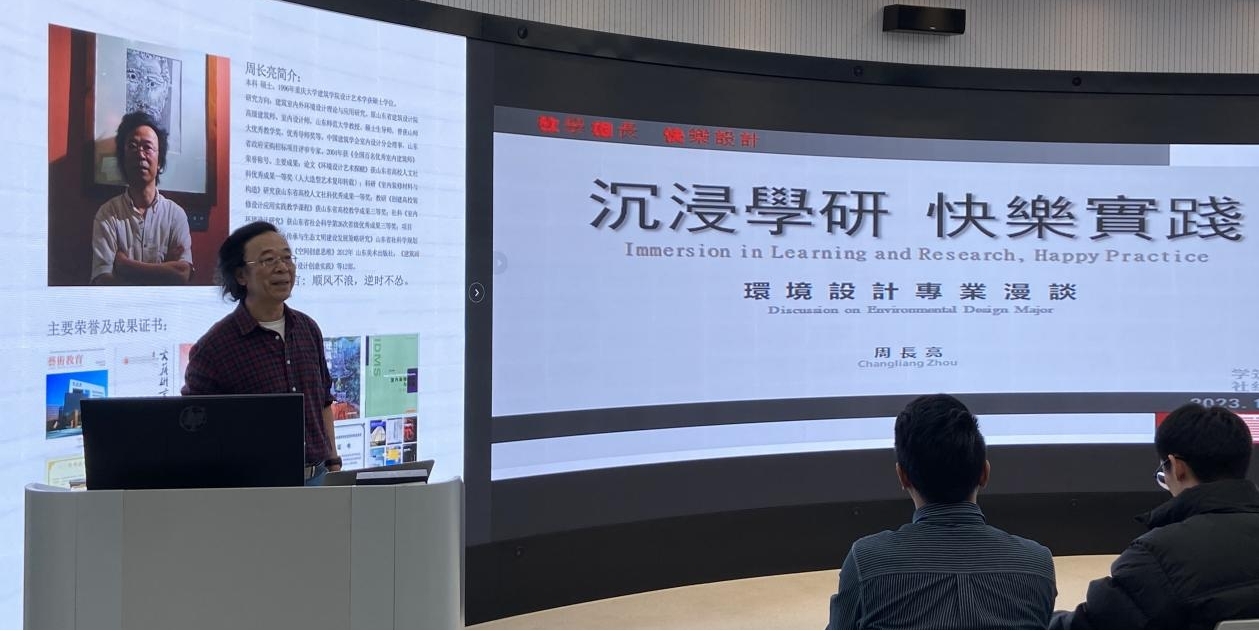 周教授以自身丰富的设计实践经验和获奖作品为例,向教师们展示了他对环境设计专业教学与实践研究的独特见解。他的讲座引发了教师们的广泛思考和积极交流,为环境设计领域的教学与研究提供了新的思路和启示。