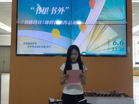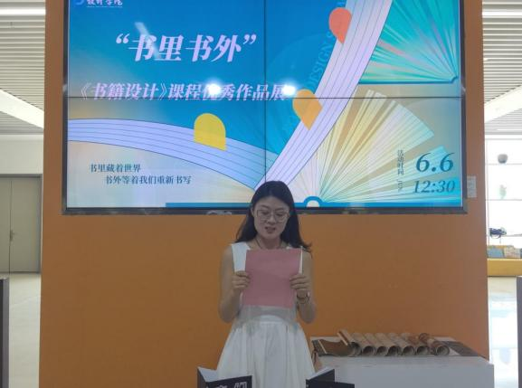开幕式由设计学院徐亭亭老师主持。此次展览共展出本科2022级、专升本2024级的143份书籍设计佳作,全方位展现了学生们非凡的创新思维与扎实的实践能力,生动诠释了视觉传达设计专业“通专业、重实践”的教学理念。这些作品突破传统书籍设计框架,以多元视角探索书籍艺术的无限可能。优秀学生代表陈梦雨在发言中分享创作心路。她结合自身作品,讲述了从构思到成型的成长历程,在老师们的悉心指导下,对“书里书外”的设计理念有了全新认知,深刻领略到书籍设计背后蕴藏的独特魅力。