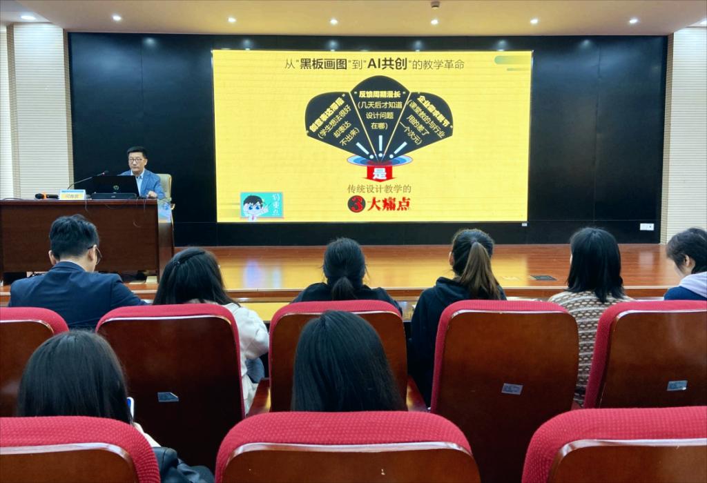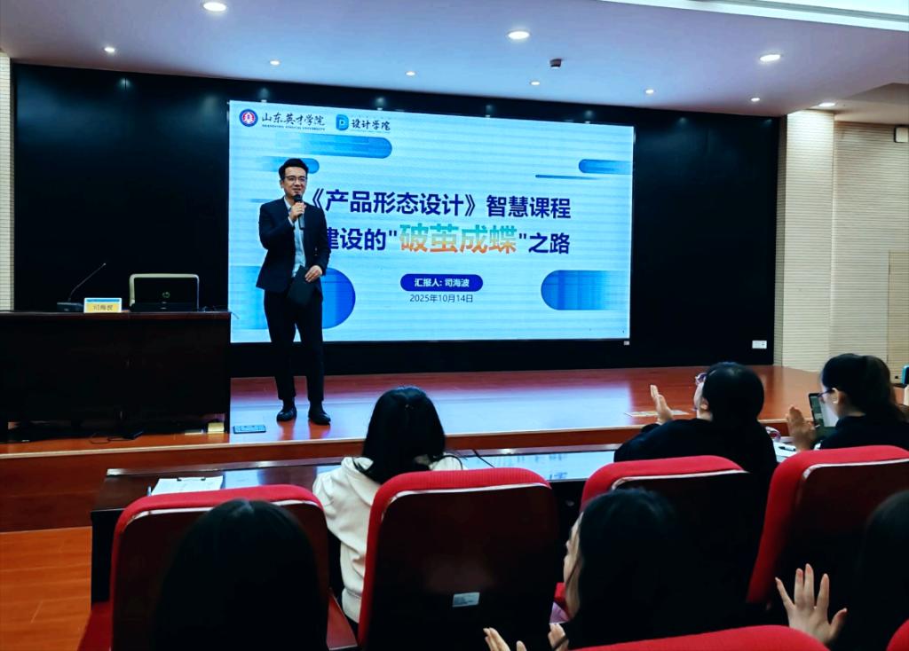 为进一步推进学院智慧教育建设,提升课程教学质量与创新水平,设计学院于10月14日在学术报告厅成功举办智慧课程建设经验分享会。本次分享会特邀学院《产品形态设计》课程负责人司海波老师担任主讲人,设计学院全体专业教师、商学院部分教师全程参加此次活动。活动由教学院长尚宪福主持。
