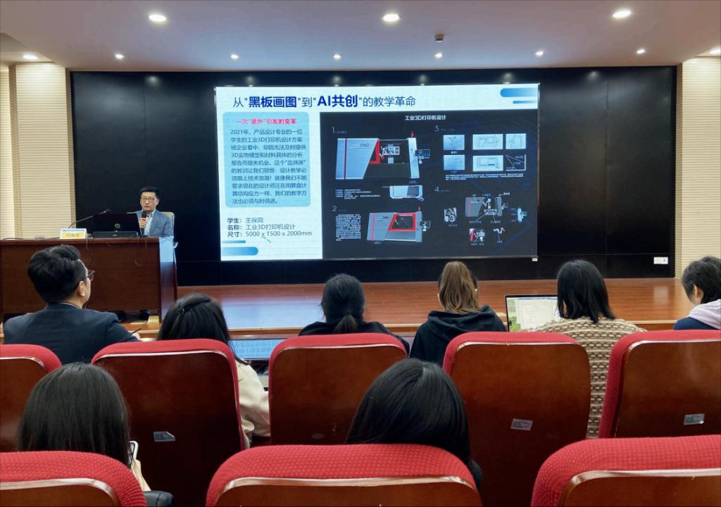 在具体经验分享中,司海波主任结合实际教学案例,生动展示了如何利用智慧教学工具优化课堂流程。例如,在产品原型设计环节,借助AI建模软件与云端共享平台,学生可实时上传设计方案,教师通过在线批注功能及时给予指导,同时支持学生间跨小组协作交流,极大提升了设计效率与创意碰撞效果;在课程评价环节,通过数字化评分系统整合学生课堂表现、作品质量及小组互评数据,实现了教学评价的科学化与精准化。此外,他还分享了课程建设过程中遇到的挑战与解决思路,如技术平台适配、师生数字素养提升等,为其他课程的智慧化改造提供了实用参考。