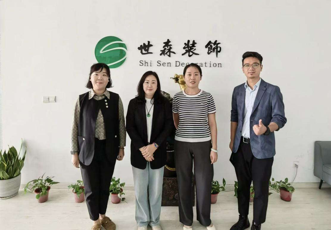 随后,访企团队前往济南世森装饰设计工程有限公司。该公司是集装饰规划、设计、施工于一体的综合性企业,秉承“集客户之所想,思客户之所律,筑客户之所要” 的理念,深耕商业空间设计领域。企业负责人带领参观了精品项目案例展示区,详解办公、酒店、餐饮等空间的设计流程与施工标准。交流中,企业方坦言当前对兼具设计功底与工程实操能力的复合型人才需求迫切。教学副院长尚院长结合学院环境设计、室内设计专业培养方案,提出“真题真做”教学模式,建议企业将实际项目引入课堂;系主任们则与企业负责人就课程内容优化、实习考核标准等问题深入探讨,双方约定建立毕业生就业推荐绿色通道,并计划联合开展“商业空间设计”专项实训。