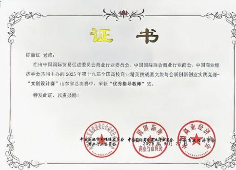 指导教师陈丽红获评“优秀指导教师”