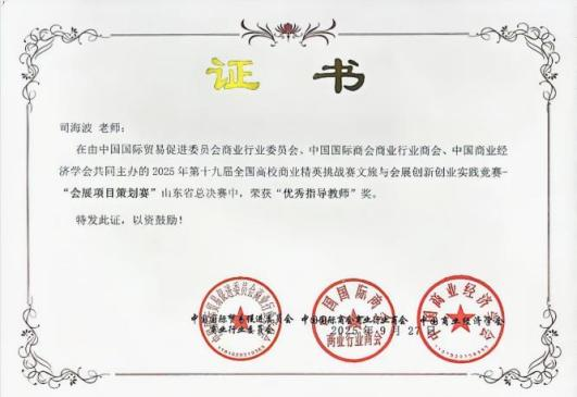 指导教师司海波荣获“优秀指导教师”奖