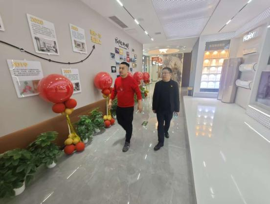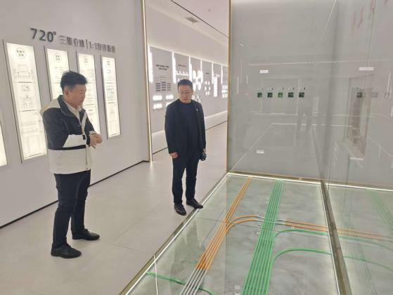 在山东绿港装饰,考察团走进家居体验馆与材料展厅,重点了解其“徽派108道工艺”标准与马可波罗瓷砖等一线建材供应体系,现场查看隐蔽工程工艺展示与“先装修后付款”服务流程。