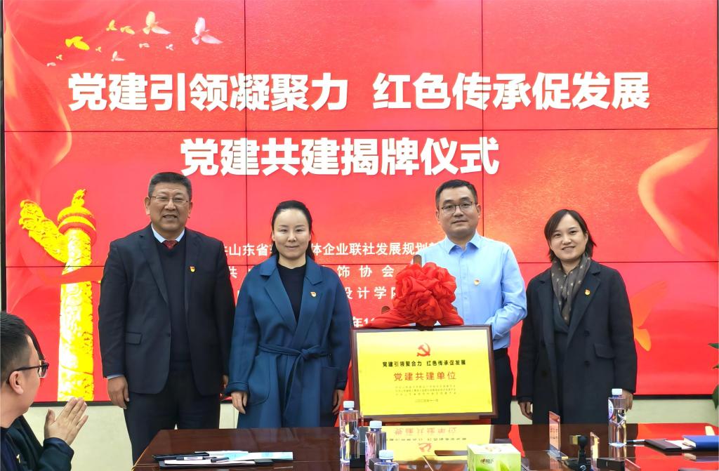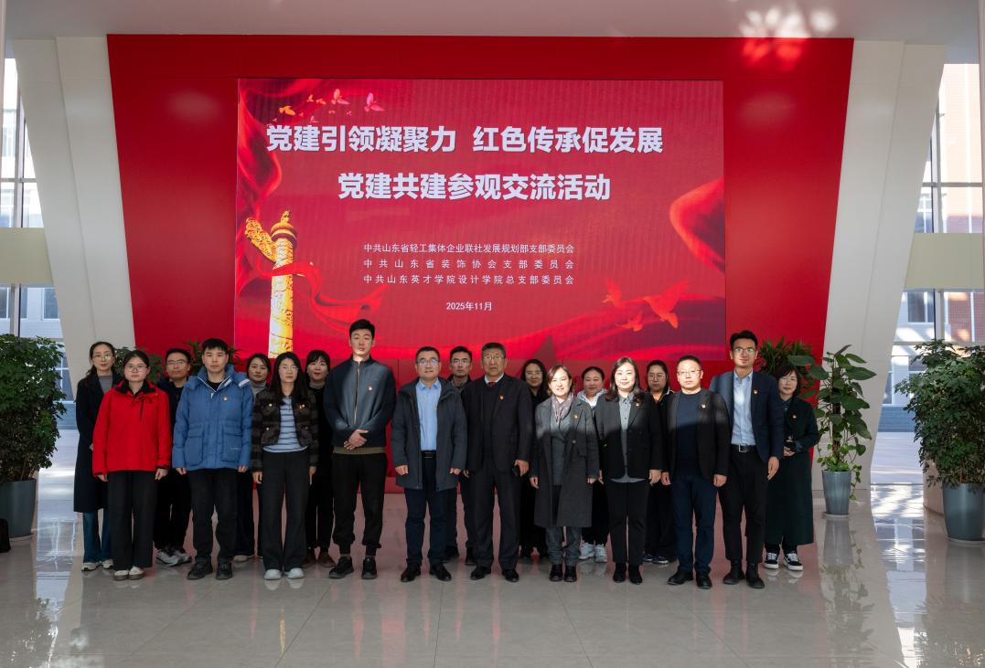 2025年11月21日,中共山东英才学院设计学院总支部委员会牵头,与中共山东省轻工集体企业联社发展规划部支部委员会、中共山东省装饰协会支部委员会联合开展“党建引领凝聚力 红色传承促发展”党建共建系列活动,签约并揭牌成立党建共建单位,奏响校地(企)合作新乐章。