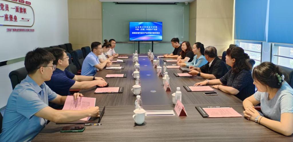 2025年6月12日上午,山东英才学院纪委书记、副校长李晓玲,设计学院院长周长积,设计学院执行院长郝莹,视传数媒系主任李俊峰及教师代表陈丽红、夏兆冬一行赴中国(济南)新媒体产业园,与济南媒体港文化传媒公司等企业共同举行校企合作签约仪式。济南媒体港文化传媒公司副总经理陈广升,山东省动漫协会会长刘薇,济南市公益广告大赛项目经理于乃霞,山东科视文化产业有限公司总经理董永等企业领导出席活动。