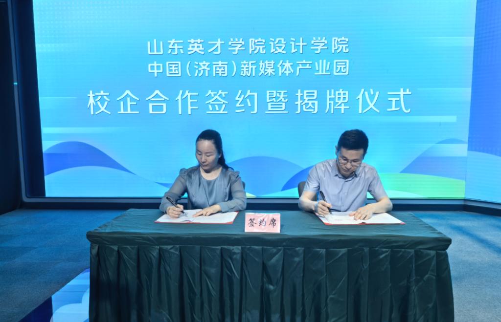 在现场嘉宾的见证下,山东英才学院纪委书记、副校长李晓玲与济南媒体港文化传媒公司副总经理陈广升正式签署校企合作协议,并为“山东英才学院实践教学基地”揭牌。标志着双方在人才培养、资源共享、项目共建等方面达成深度共识,开启产教融合新篇章。