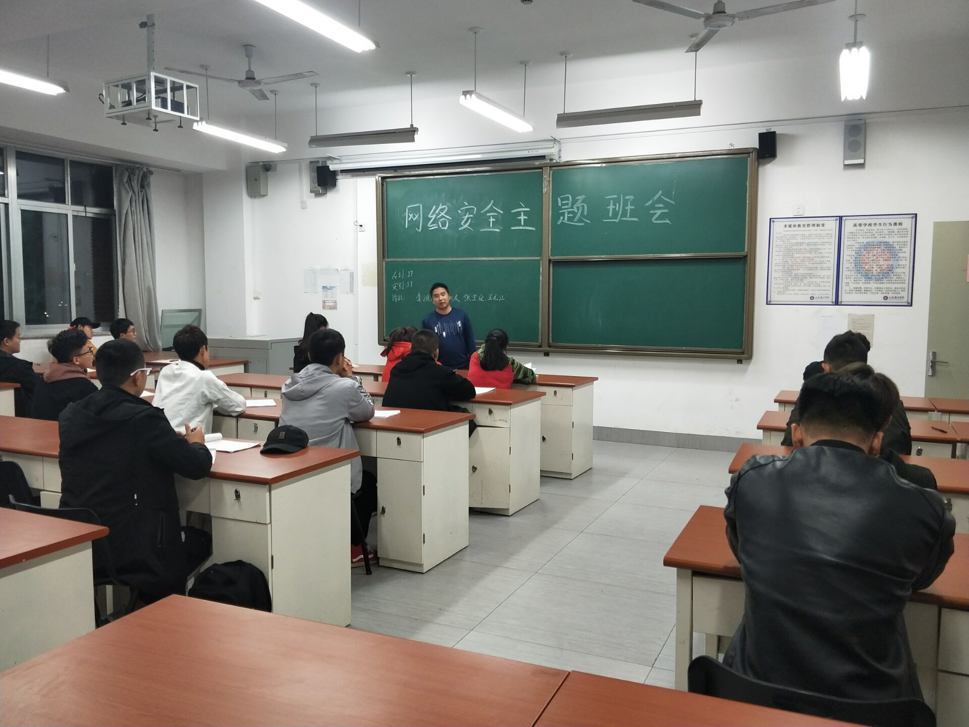 大一新生刚刚入学,为增强同学们的安全防范意识,提高同学们的安全防范能力,全面普及校园安全常识,艺术学院学生会团委组织各个班长团支书与2018年10月11号举办“网络安全教育”主题班会,且有艺术学院大一辅导员和全体大一新生参与。