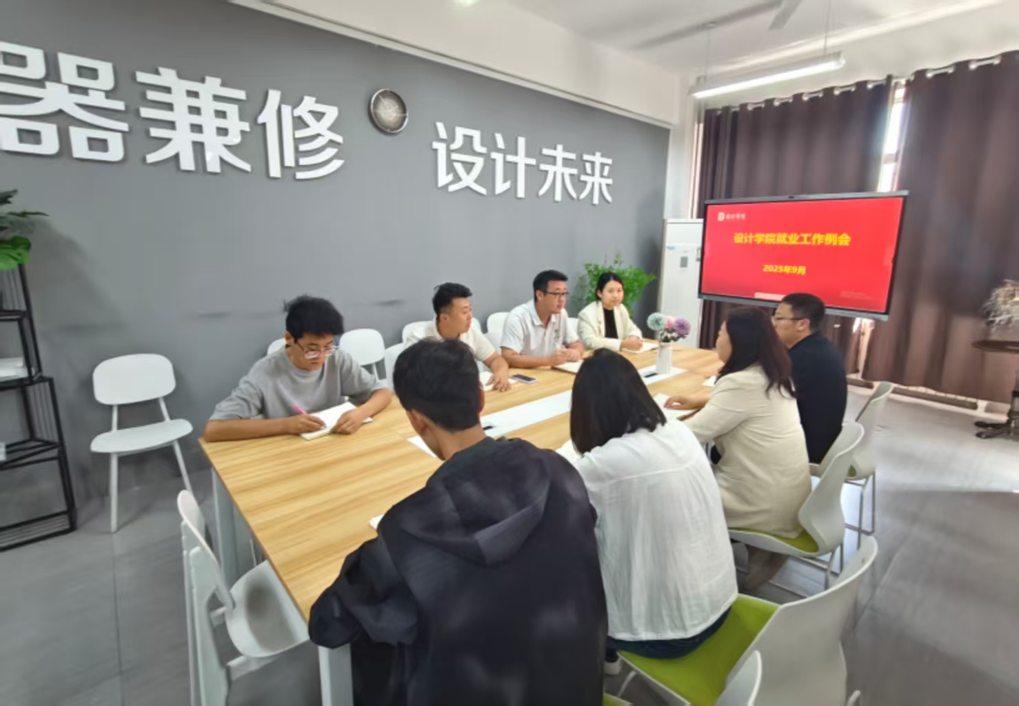 为统筹推进2026届毕业生实习就业工作和2025届就业困难同学帮扶工作,确保如期完成就业指标。2025年9月28日,设计学院在艺术楼315召开2026届毕业生9月份就业工作第二次专题例会,设计学院党总支书记郝莹、党总支副书记尚再斐、就业工作专项负责人及毕业班全体辅导员参会。