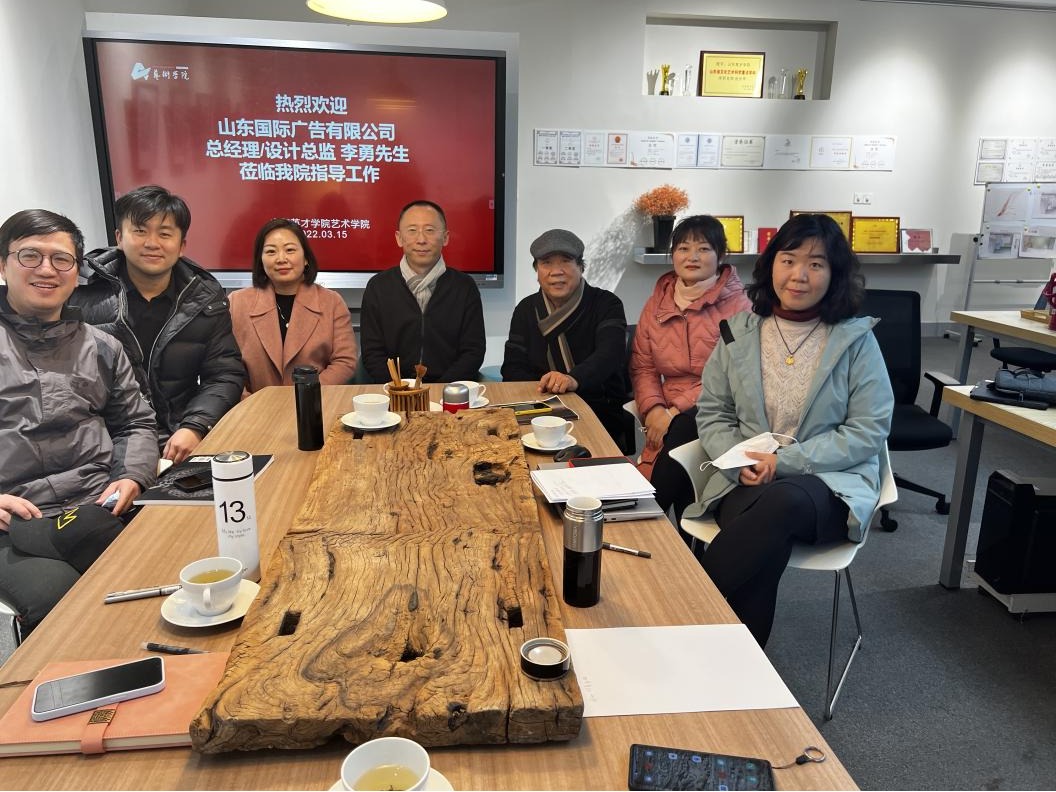 2022年3月17日下午,山东省国际广告有限公司总经理兼设计总监李勇先生来艺术学院进行参观和交流座谈。艺术学院院长周长积教授,艺术学院教学副院长郝莹副教授,视传数媒系主任师欢欢副教授,视传数媒系李俊峰副教授、姚旭鹏副教授和马翔老师一起陪同。先后参观了艺术学院各专业实验室、艺术展览馆和荣誉室,李勇先生对艺术学院的教学环境、教学设计、教学理念和所取得的优异成绩给予了充分肯定。