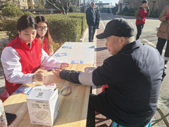 为了积极推动医疗服务走进基层社区,近日来自山东英才学院医学院高职护理2312班的一群志愿者们在2024年12月8日深入山东省济南市历城区郭店街道东城名群社区,开展了一场意义深远的义诊活动,用实际行动诠释青春担当,为社区居民的健康福祉贡献力量。