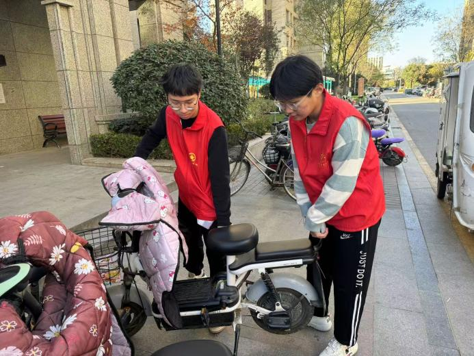 社区环境整治行动全面开启,志愿者们手持清扫工具深入各角落,仔细清理落叶、烟头和垃圾,用扫帚、簸箕清理杂物,对墙角、绿化带等卫生死角也绝不放过,弯腰夹取垃圾。同时,志愿者两两一组,全力规范电动自行车停放,将乱停车辆搬运至指定区域并整齐摆放,让社区通道恢复井然有序,即便利居民出行,又提升社区整体形象。