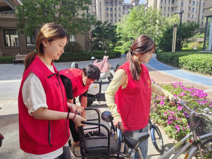 在社区环境整治方面,整理电车、清洁卫生和清理小广告的工作同步推进。部分志愿者们在社区非机动车停放点,将随意停放的电动车、自行车摆放整齐,并引导居民规范停车。另一部分志愿者则手持扫帚,对社区道路、绿化带中的垃圾进行清扫,不放过任何一个卫生死角。还有志愿者仔细清理楼道、电线杆上的小广告,经过大家的努力,社区面貌焕然一新。