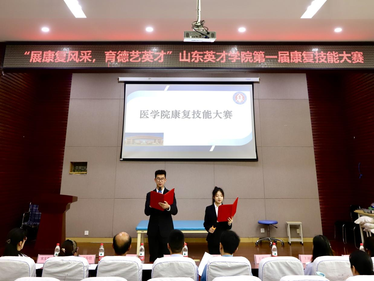 为进一步提高医学院康复专业学生的岗位胜任能力,培养同学们爱岗敬业的精神,达到以赛促教、以赛促学的目的。2023年5月26日,医学院举办首届“展康复风采,育德艺英才”康复技能大赛。医学院院长卢传华,教学副院长王世芳,康复教研室主任邬春艳及康复专业教师参加,比赛特别邀请山东省立第三医院立三院康复治疗中心主任胡川、中医康复科主任王欣担任评委,医学院康复专业学生共6支队伍参加比赛。