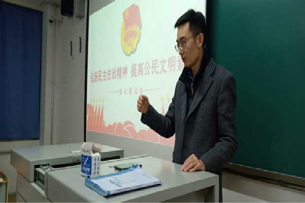 为了进一步学习宪法,更好发挥宪法的国家根本法制作用,提高国民文明素质,山东英才学院医学院于2018年12月20日20:00在医学院2015教室开展了“弘扬民主法制精神,提高公民文明素质”院长授课。此次主题教育由医学院总支部副书记王君主持,医学院2018级各班团支书、组织委员、宣传委员参加。